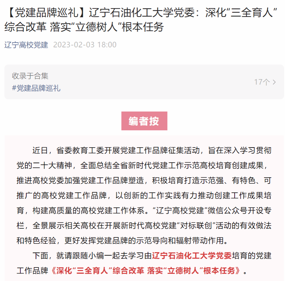 辽宁高校党建微信公众号:https://mp.weixin.qq.com/s/ewHw-5UzqxElsi-Rc05Qow