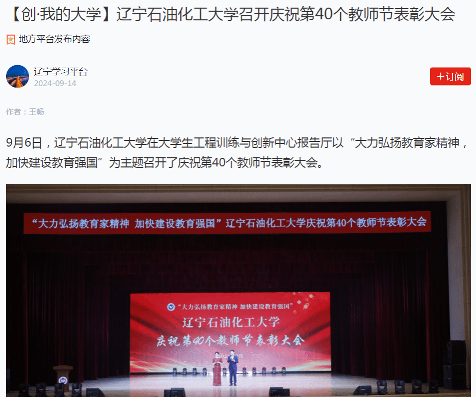 编者按:9月6日,国产亚洲综合一区二区三区_亚洲欧美日韩中文天堂_尤物在线观看视频不卡无码_国产最新精品亚洲2025不卡_亚洲成Av人在线观看片水蜜桃在大学生工程训练与创新中心报告厅以“大力弘扬教育家精神,加快建设教育强国”为主题召开了庆祝第40个教师节表彰大会。学习强国辽宁学习平台、中国大学生网、辽宁日报·辽望号、人民日报客户端·人民号、搜狐号等对此进行了宣传报道。现将相关报道转载如下:
