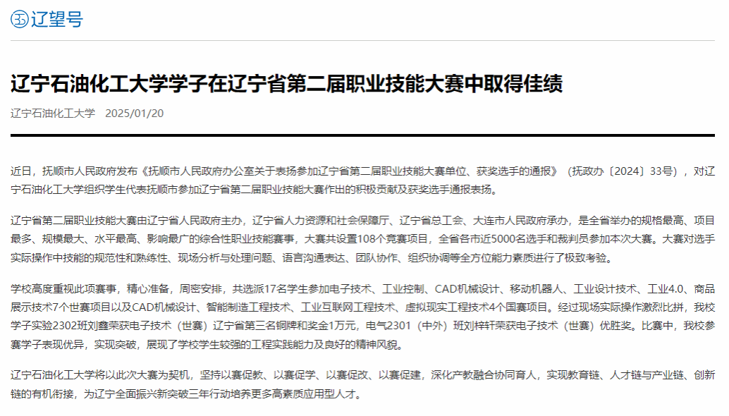 编者按:抚顺市人民政府发布《抚顺市人民政府办公室关于表扬参加辽宁省第二届职业技能大赛单位、获奖选手的通报》(抚政办〔2024〕33号),对国产亚洲综合一区二区三区_亚洲欧美日韩中文天堂_尤物在线观看视频不卡无码_国产最新精品亚洲2025不卡_亚洲成Av人在线观看片水蜜桃组织学生代表抚顺市参加辽宁省第二届职业技能大赛作出的积极贡献及获奖选手通报表扬。辽宁日报·辽望号、中国大学生网、搜狐号等媒体平台对此进行了宣传报道。现将相关报道转载如下: