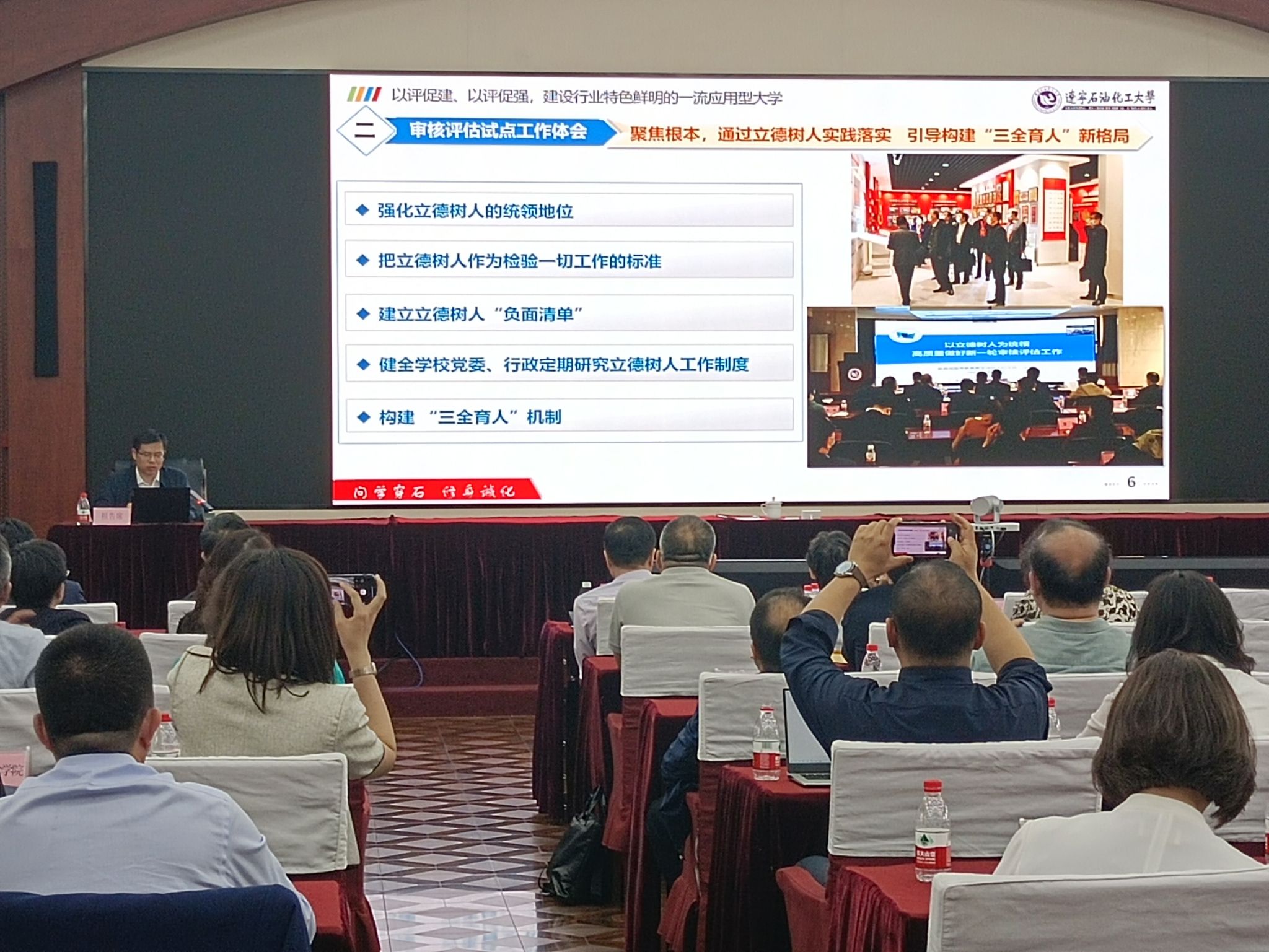 副校长曹江涛代表学校以“以评促建、以评促强,建设行业特色鲜明的一流应用型大学”为题作了大会报告。从试点实践的视角,详细介绍了学校承担新一轮本科教育教学审核评估试点工作的参评概况、总体时间设置与具体工作流程;结合评估方案及指标内涵、学校评建改工作及专家线上、入校考查的聚焦重点,深入阐述了作为第二类第二种应用型试点院校在新一轮审核评估工作中的切身体会与感悟;围绕建成国内一流高水平应用型大学发展目标,着重汇报了学校评估整改进展情况、所取得的重点成效以及今后本科教育教学工作的努力方向。